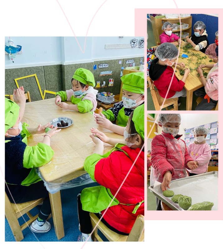 周六下午,幼儿园也为孩子们提供了传统青团作为点心。通过本次活动,孩子们了解了传统节日——清明节的丰富内涵,让“爱祖国、爱家乡”的种子在幼儿的心中生根萌芽。