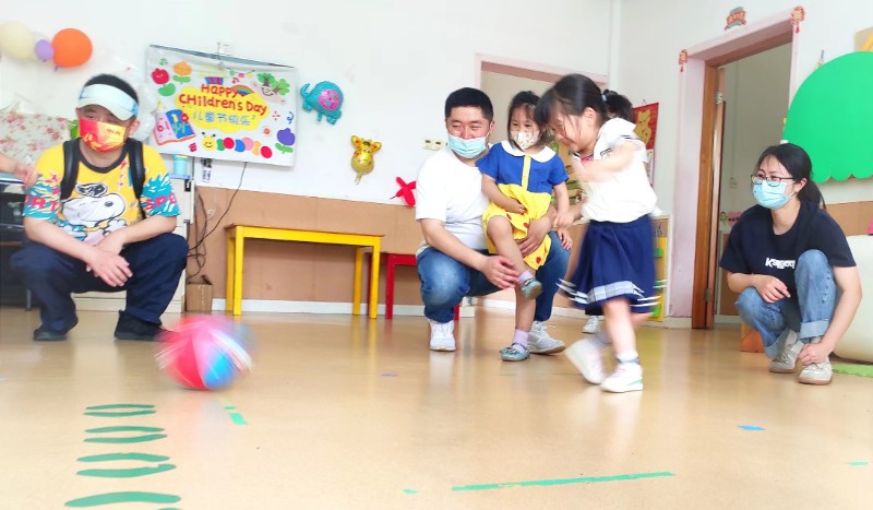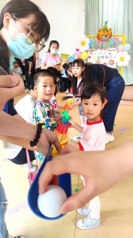 孩子们乐呵呵地投球,家长们努力地接球,看看谁的默契度最棒。