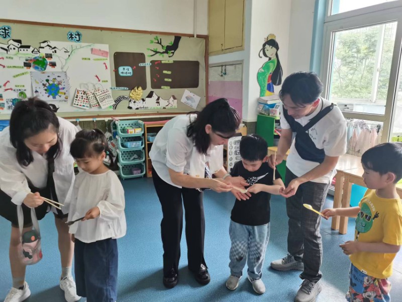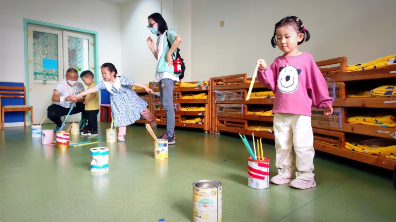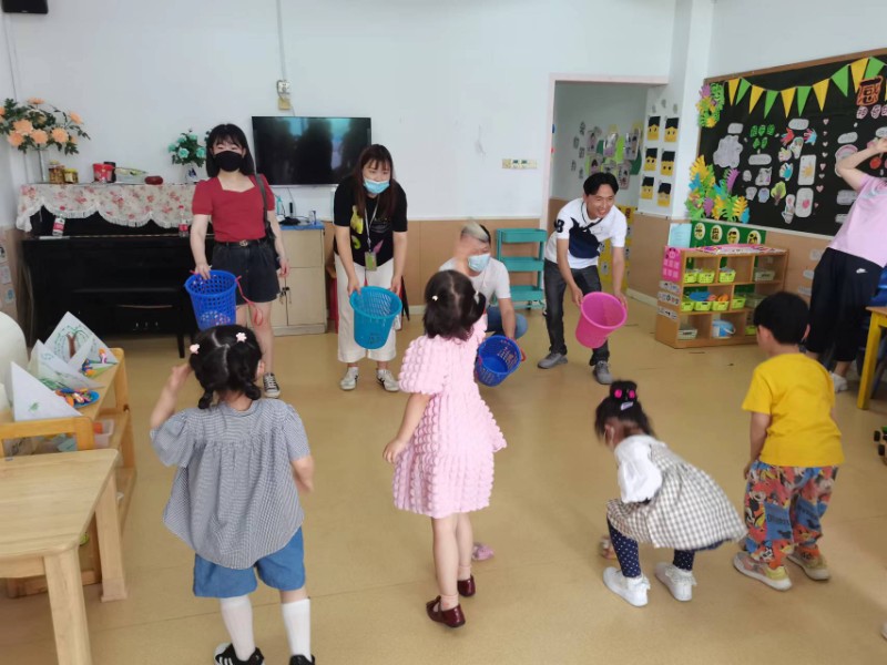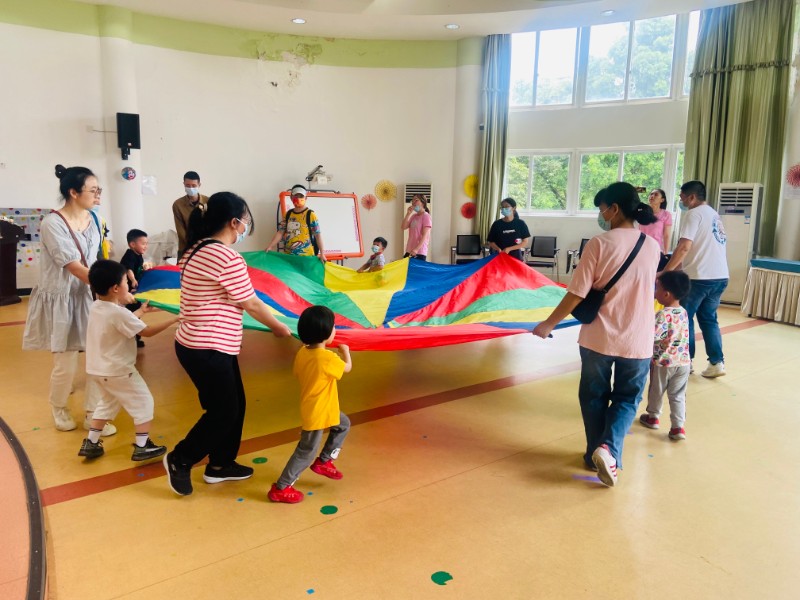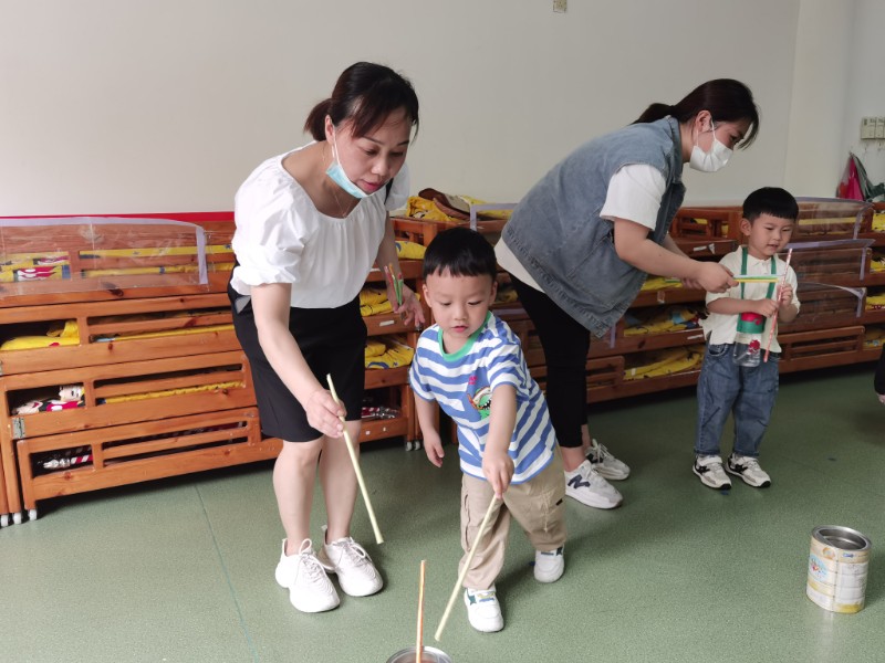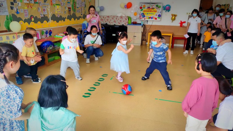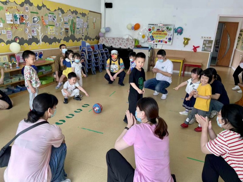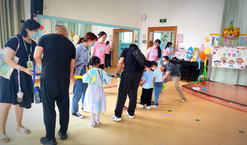 小班的弟弟妹妹们也在家长的陪伴下玩起了别样的亲子游戏。