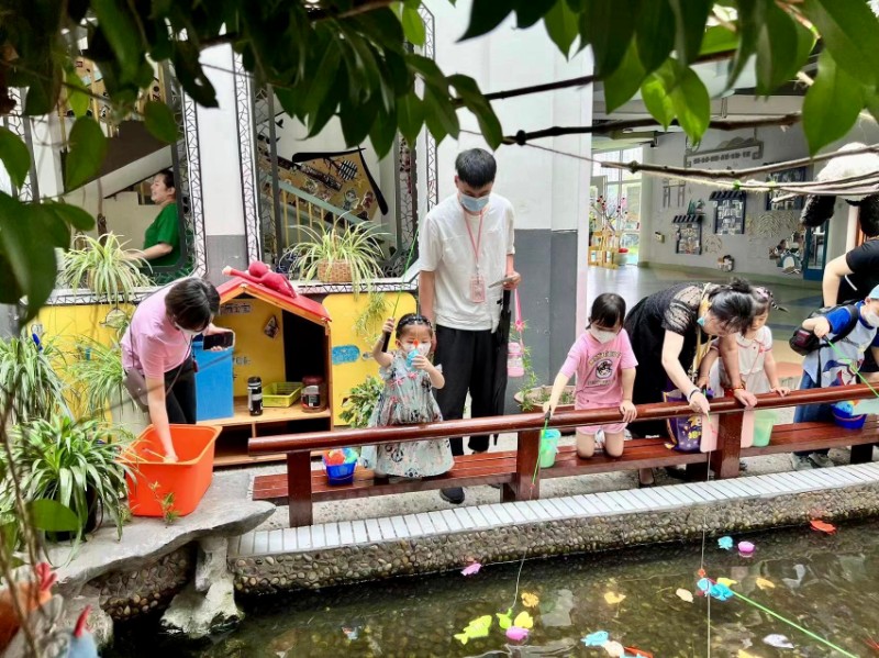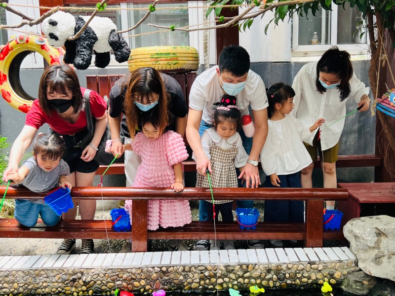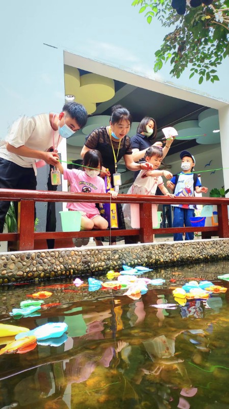 孩子和家长自行选择一个垂钓点,看看最后谁的数量多。