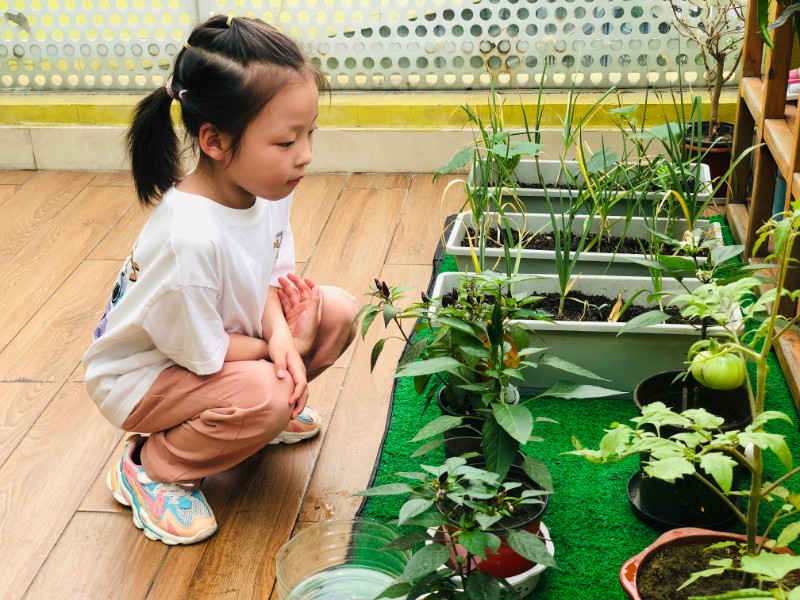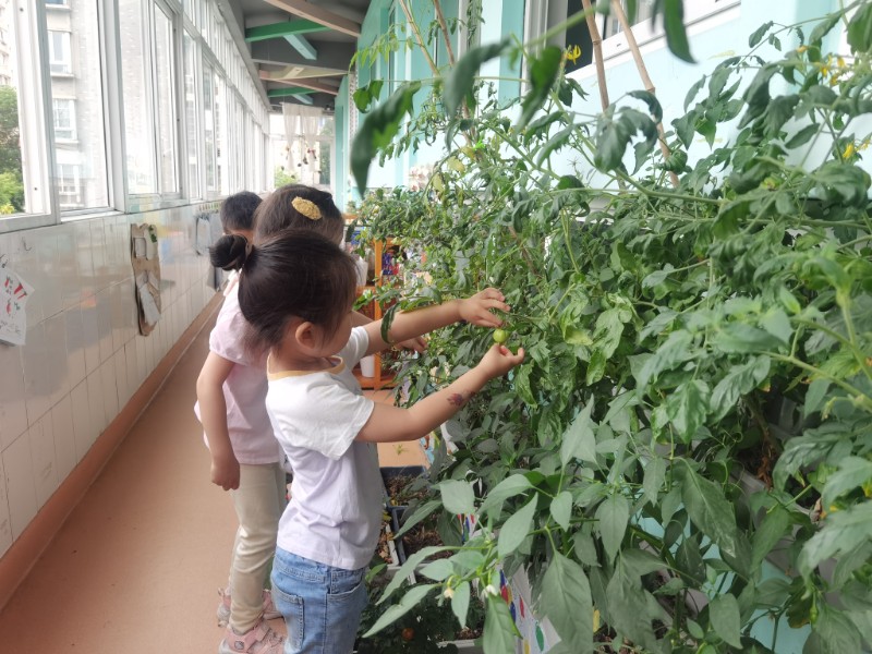 长时间用眼过度,使眼睛经常处于紧张状态,久而久之视力就会慢慢下降。孩子们一起观看远方、绿植,观察一下种植地的花果蔬菜都长大了吗。