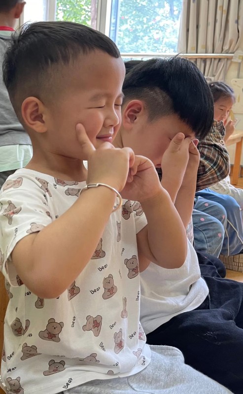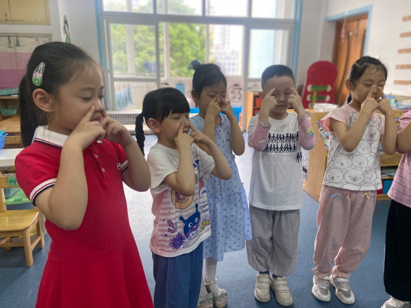 转转我的小眼珠,我的眼球最灵活,学习休息两不误,赶走疲劳真有用!你瞧,在老师的指导下,小朋友们每天都在认真地做眼保健操。