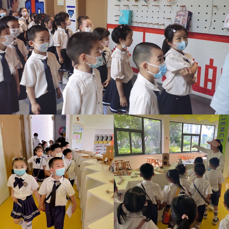 在小学老师的带领下,小朋友们参观了学校的操场、教室、专业活动室、空中农场。。。。。。小朋友们排着整齐的队伍走在校园内,他们的小脑袋到处张望,迫不及待地想去看看校园里每一处风景。高大明亮的教学楼、优美整洁的校园、飘扬回荡的读书声……一切都是那么新奇。