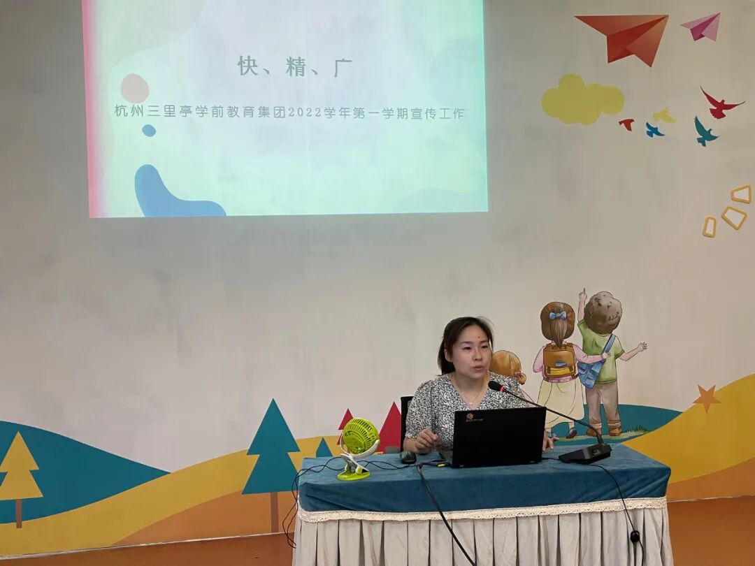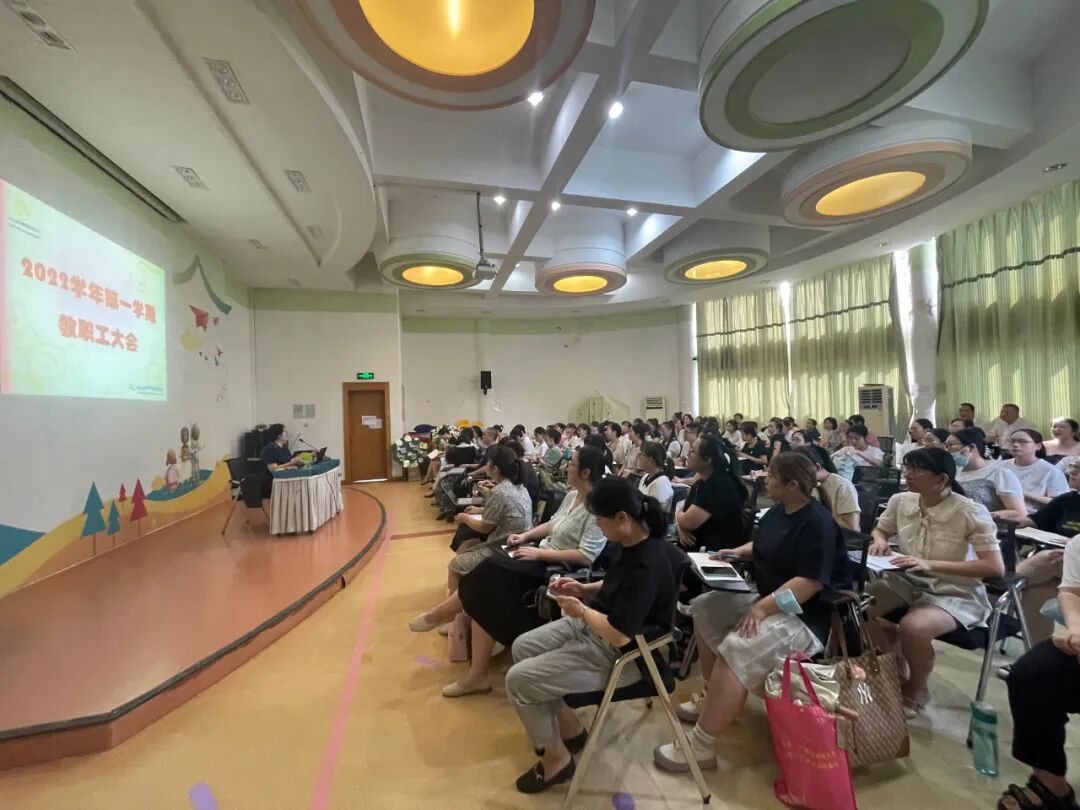 2022年8月26日,杭州三里亭学前教育集团全体教职工在总园举行了开学工作会议,为迎接新学期、新征程做足准备。 沐浴着初秋的气息,怀揣着美好的憧憬,会议在方园长的讲话中拉开了序幕!三位副园长就自己负责的本学期的工作内容做了详尽的安排和展望。 会上,赵海燕副园长从“快”“精”“广”这三个关键字入手对新学期的宣传工作安排进行了详细的介绍,让大家明确了新学期宣传口子的发展方向和工作重心。安全是幼儿园工作的重中之重,赵老师还将各项安全工作进行了细化和部署,确保各岗位教师把幼儿安全始终贯穿于幼儿园一日生活的各项活动中,班子成员、中层、安全员、教师、保育员等代表和方园长签订了岗位安全责任书,明确自己岗位的职责。 赵萍萍副园长立足指南和保教文件的相关精神,阐述了有关教育教学工作的共建方向,为老师们下一步的发展提供了相应的思路。她鼓励老师们以崭新的、充满活力的面貌面对新学期,大家一起坚守初心、朝向美好,以饱满的热情和专业的保教水平在新学期里携手共进。 后勤工作是幼儿园整体工作不可或缺的一部分,李美英副园长重点介绍了本学年幼儿园后勤保障工作的计划和要点,依托文件要求,分别从幼儿保健、物资管理和档案收集等方面进一步明晰了园区后勤工作的目标和措施。 最后,方园长对新学期的园务工作计划进行了解读。对新学期工作计划、重点工作和新学期愿景等方面进行阐述。强调了老师们的师德师风建设问题,也同时期盼全体教职工能够以崭新的面貌以及积极向上的精神对待即将开始的新学期工作。 新旅程,有“备”而来,新学期,从“心”出发。本次会议的召开,为幼儿园顺利开学做好了充足的准备。杭州三里亭学前教育集团将继续用勤奋和努力,奔跑在新学期的征程上,凝心聚力,扬帆起航!