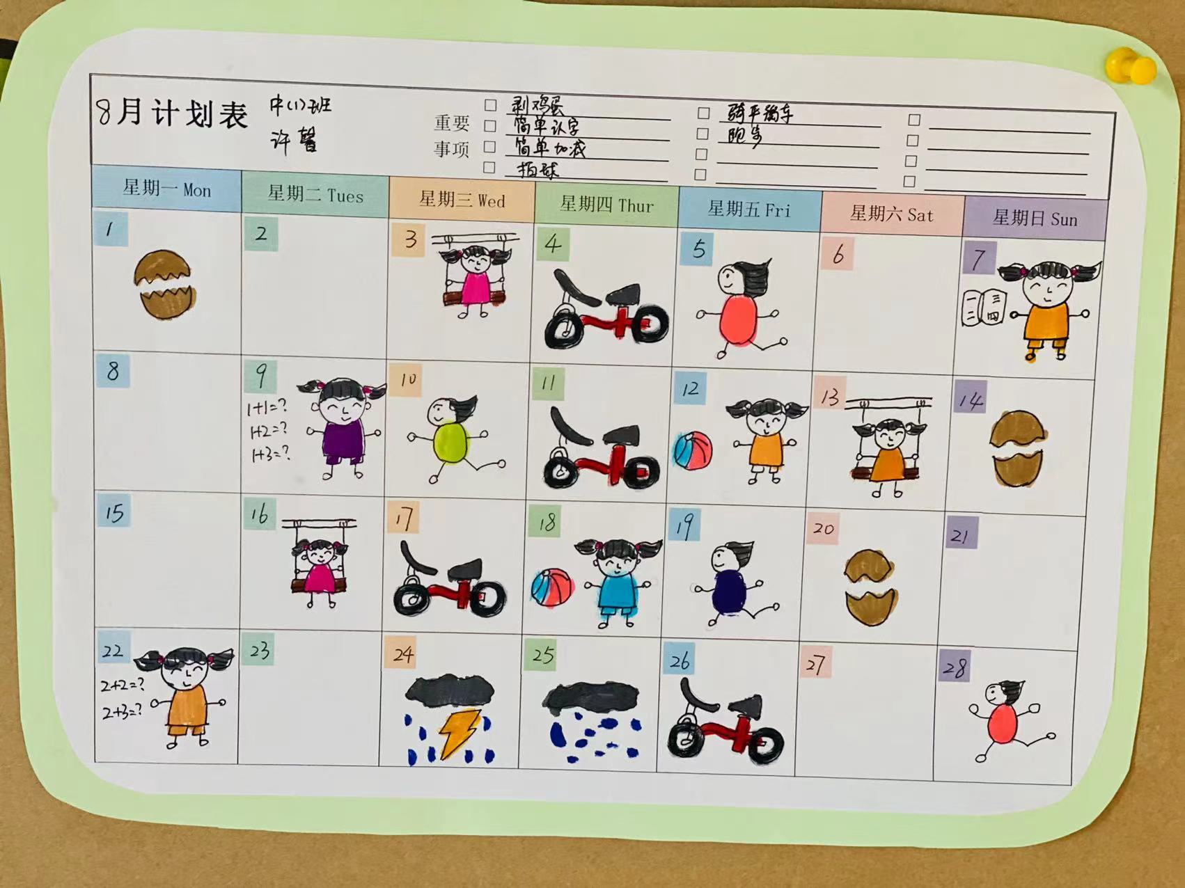 “一寸光阴一寸金,寸金难买寸光阴。”暑假生活怎么能虚度呢?暑假初,大班的孩子们就制定了自己的暑假计划,一起来看他们为自己制作的暑假安排吧!