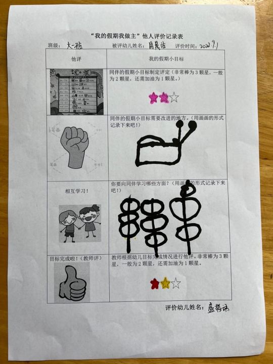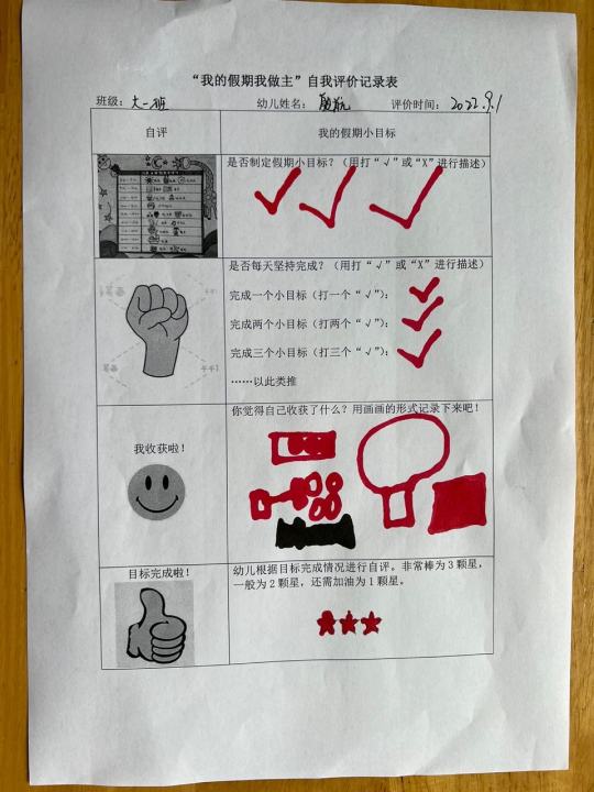 活动中,孩子们参与的积极性非常高,通过自己制定的计划,做自己时间的小主人,度过规律又丰富多彩的每一天。在实施计划中还不忘用各种方式来记录下自己的暑假生活,在返园后与老师、同伴进行分享交流并进行评价。