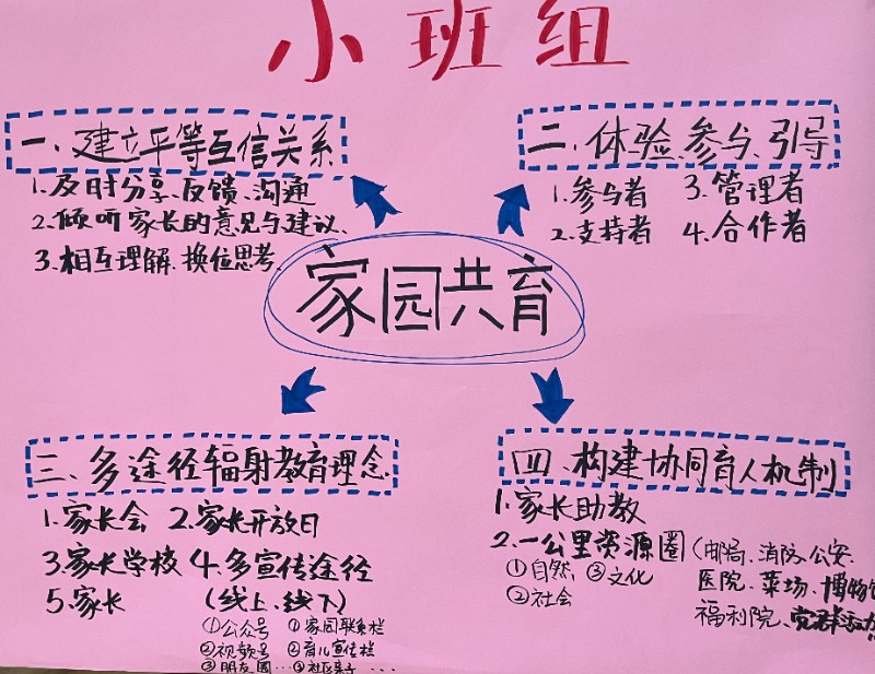 基于教师工作实际需求,教师们用思维导图的形式提炼关键经验、畅谈思考、提出策略。针对每个板块的侧重点进行分析。
