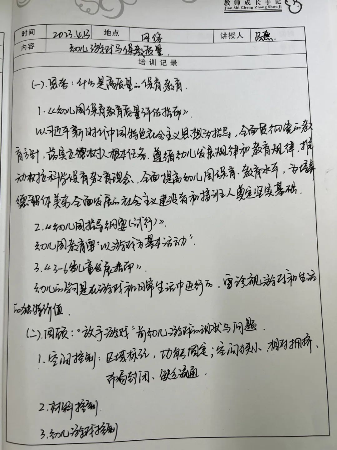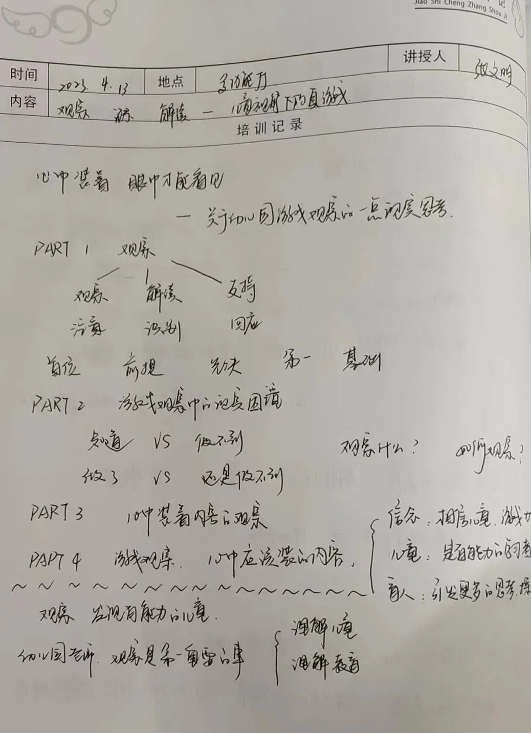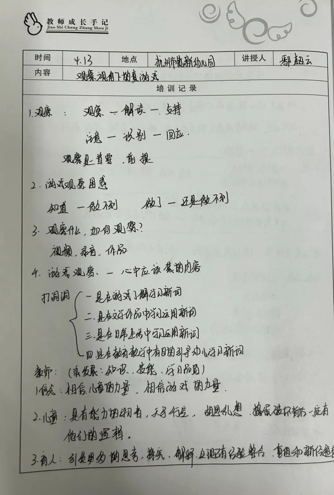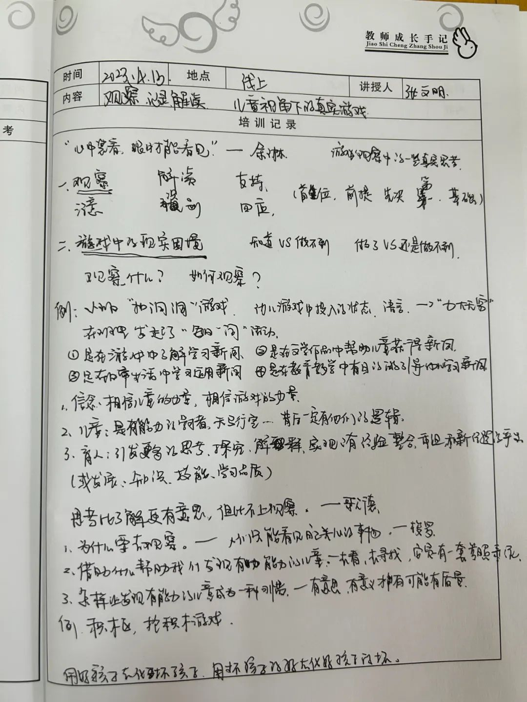 学为行之始,视为学之成。通过本次培训,让全体教师对游戏有了新的思考,透过游戏现象看到儿童在游戏中的发展和潜能,边学边思、边学边研,不断探索儿童的“真游戏”,让带有温度的游戏呵护孩子的童年,让游戏助力儿童的全面发展!