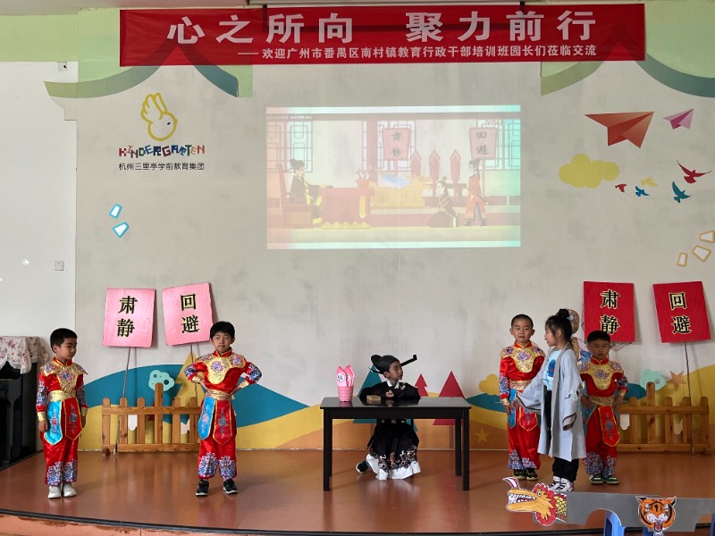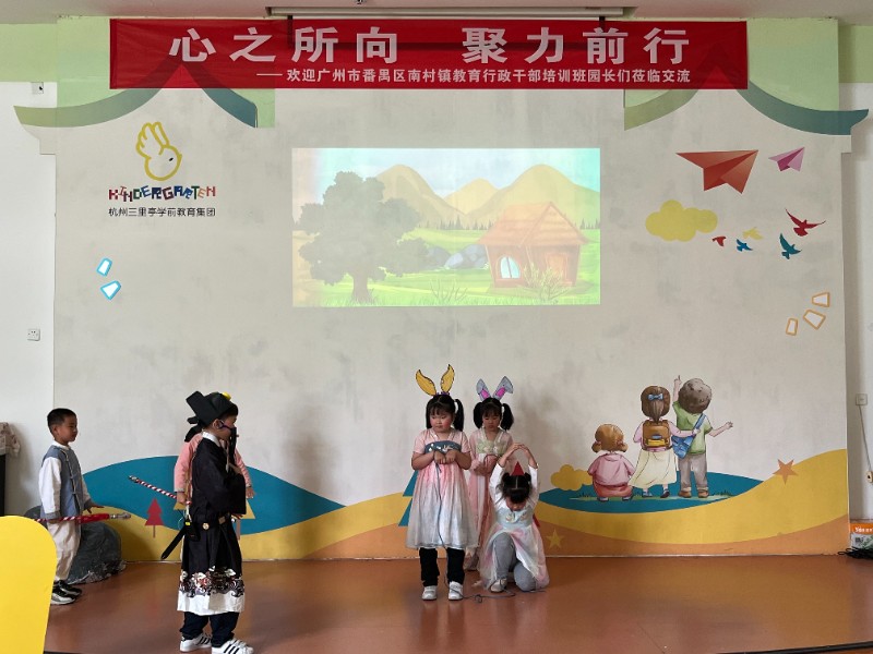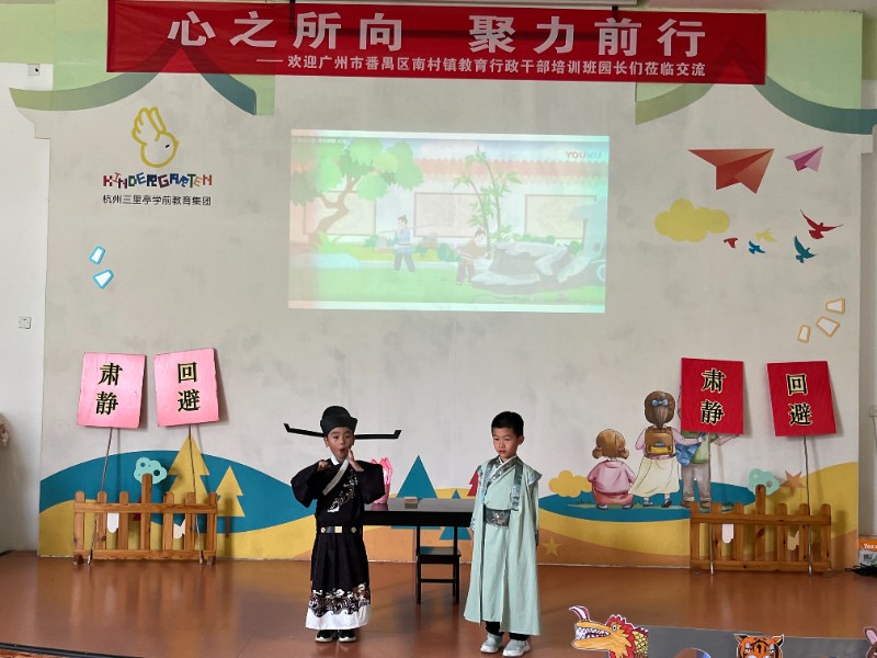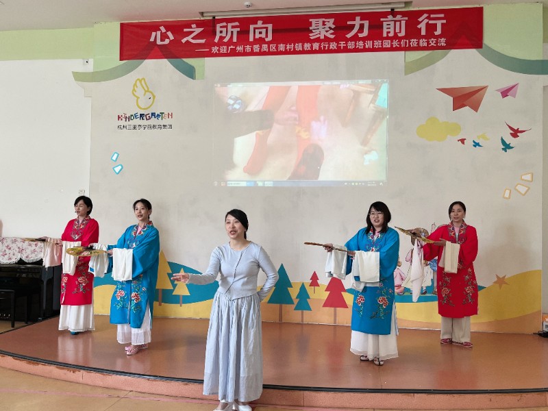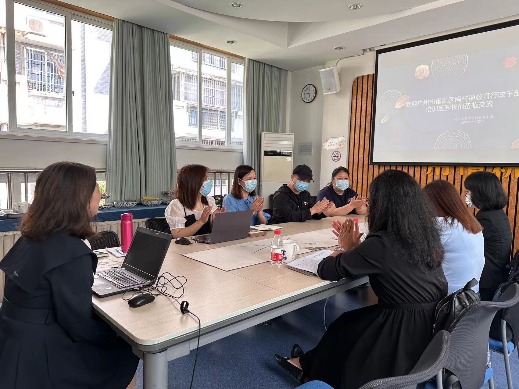 为了更好地促进园所之间自主游戏观察交流,创设资源共享、相互学习、共同发展的平台。5月23日上午,杭州市三里亭幼儿园迎接了广州市番禺区南村镇教育行政干部培训班园长们为期2天参观学习,共建地区之间交流,促进两省之间教育理念与课程架构的相互碰撞与融合。