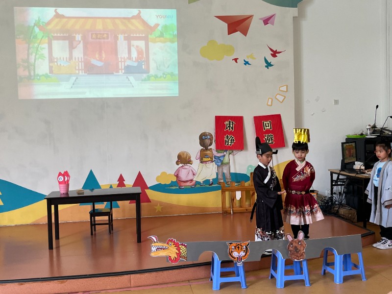 在廉政、宋韵文化的熏陶下,大班的老师们带着孩子们学习了包公的故事。大班的京剧表演在念白、动作的基础上,加入了唱腔、身段的表现。