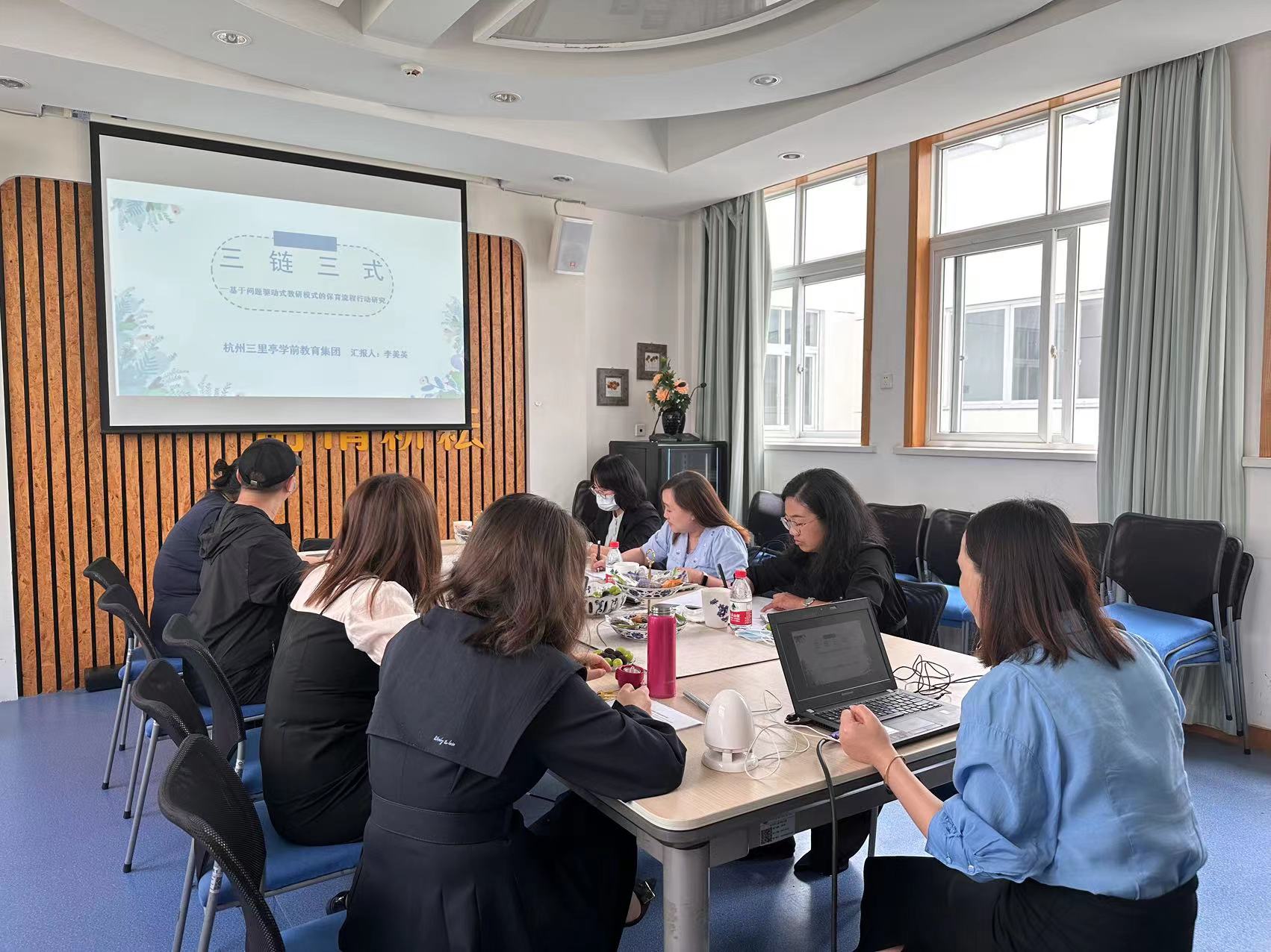 上午,园长们走访了杭州三里亭学前教育集团明桂苑园区和东港园区。在赵海燕老师的带领下,参与活动的园长们对园所的室内外环境实地探访,各具特色的班级环境创设、丰富多彩的区角材料,都让园长老师们驻足品味。园长们对孩子们呈现出的大方的交谈、自主的探索状态,老师们的巧手制作纷纷表示赞叹。